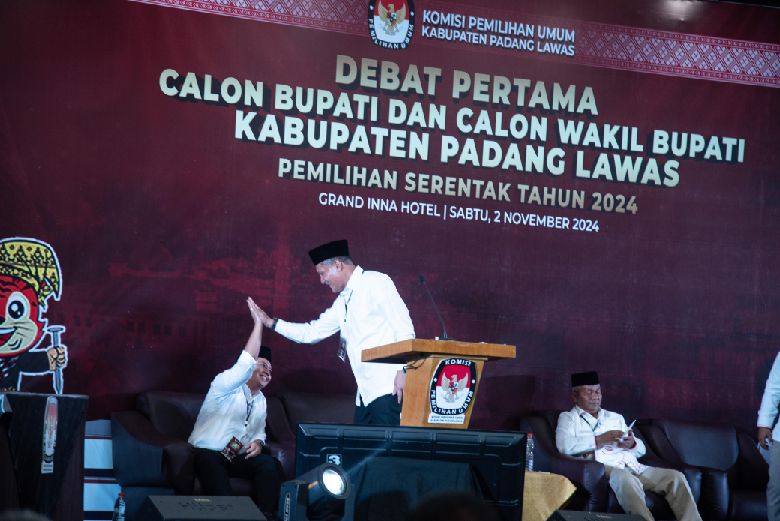 MEDAN, HARIAN TABAGSEL.com– Pasangan Calon Bupati dan Wakil Bupati nomor urut 1 dapat menyelesaikan debat publik perdana secara lugas dan totalitas, Sabtu (2/11) malam yang dilaksanakan di Grand Inna Hotel Medan. Segmen demi segmen, Putra Mahkota Alam Hasibuan dan Achmad Fauzan Nasution tampil memukau memaparkan dan menjawab pertanyaan sesuai tema ‘Mewujudkan tata kelola Pemerintahan Kabupaten Padang Lawas peduli memajukan daerah yang bertanggung jawab’.
