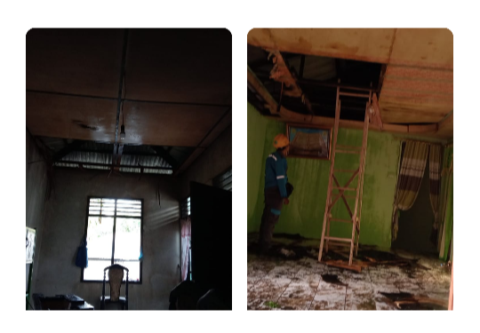 Api mulai terlihat dari bagian belakang rumah dan dengan cepat menyebar ke ruangan lainnya. Dalam kejadian kebakaran tersebut ada 1 unit rumah ludes semuanya, sedangkan 2 rumah hanya mengalami kebakaran plafon dan kayu atap rumah.