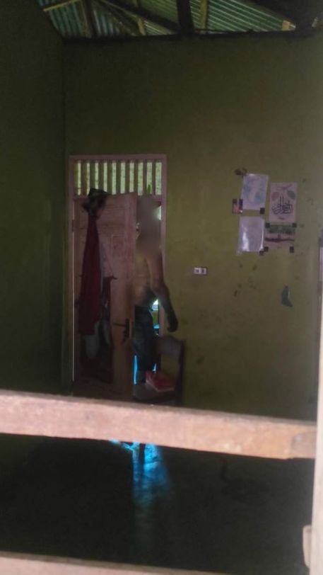 Saat ditemukan, badan sudah kaku. Menggunakan kain sarung sebagai gantungan di kusen pintu kamar.
