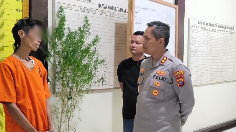 PADANGSIDIMPUAN, hariantabagsel.com- Sahrimanto Siregar alias Anto (40) warga Jalan Pengayoman, Desa Purba Tua, Kecamatan Padangsidimpuan Tenggara, Kota Padangsidimpuan, Provinsi Sumatera Utara, ditetapkan sebagai tersangka oleh Kepolisian Resor Padangsidimpuan, karena diketahui menanam ganja di pekarangan rumahnya.
