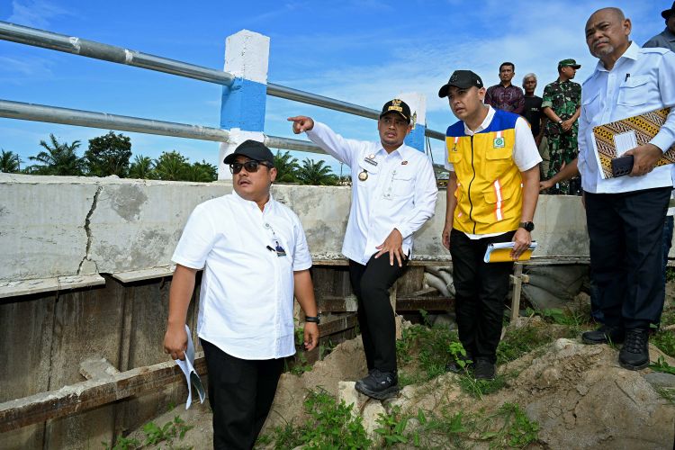 BATUBARA, hariantabagsel.com- Gubernur Sumatera Utara (Sumut), Bobby Nasution meninjau dua tanggul di Kabupaten Batubara, yakni Tanggul Dalu-dalu Jalan Lintas Sumatera dan Tanggul Sungai Sumatera II Bendung Tanjung Muda. Perbaikan dan normalisasi kedua tanggul tersebut segera dilakukan, untuk memenuhi kutuhan air pertanian.