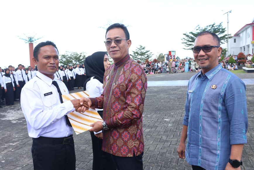 TAPANULI SELATAN, hariantabagsel.com- Bupati Tapanuli Selatan (Tapsel), H. Gus Irawan Pasaribu, secara resmi menyerahkan Surat Keputusan (SK) Pengangkatan Pegawai Pemerintah dengan Perjanjian Kerja (PPPK) Formasi Tahun 2024 Tahap I dan Surat Pernyataan Melaksanakan Tugas (SPMT) di Lapangan Parade Kantor Bupati Tapsel, Jalan Prof. Lafran Pane, Sipirok, Kamis (3/7/2025).