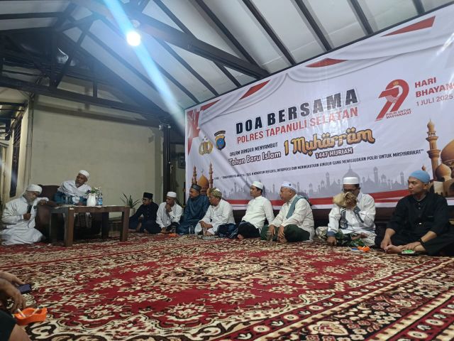 Agenda doa bersama dalam memperingati 1 Muharram 1447 Hijriah, dimulai dari pukul 20.00 Wib, dilanjutkan makan malam bersama dengan Kapolres Tapsel pukul 20.30 Wib, dilanjutkan pengajian dan Doa bersama ditutup Kapolres Tapsel pada pukul 23.45 Wib.