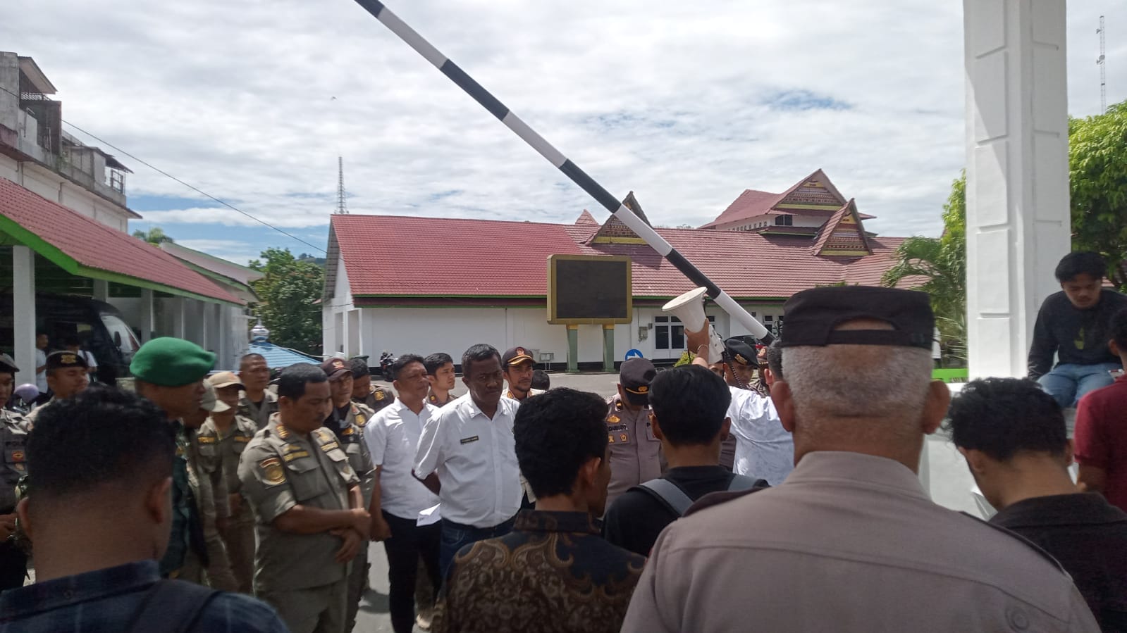 Di depan pintu masuk Kantor Wali Kota Padangsidimpuan dengan pengawalan dari pihak kepolisian dan Satpol PP Kota Padangsidimpuan, puluhan aliansi pemuda dan mahasiswa ini dengan kompak menyuarakan supaya Wali Kota Padangsidimpuan Dr. H. Letnan Dalimunthe, SKM, M.Kes secepatnya menggantikan Roni Gunawan Rambe sebagai Sekda Kota Padangsidimpuan.