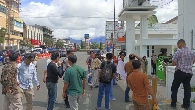 PADANGSIDIMPUAN, hariantabagsel.com– Usai fraksi PDIP menyuarakan supaya Plt. Sekda Kota Padangsidimpuan dicopot dari jabatannya, hari ini, Kamis (10/7) siang, puluhan mahasiswa dan pemuda yang tergabung dalam organisasi Gempas, Komptabagsel, GMTI, Gemas mendatangi kantor Wali Kota Padangsidimpuan dengan tuntutan secepatnya Roni Gunawan Rambe di copot dari jabatannya sebagai Sekda Kota Padangsidimpuan.