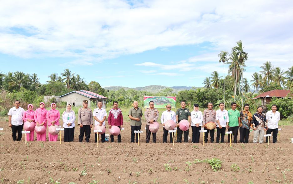 Penanaman jagung serentak kuartal III ini ditandai dengan penanaman jagung serentak Polres Padangsidimpuan dengan Forkopimda dan diakhiri dengan photo bersama. (Rahmat Efendi Nasution)