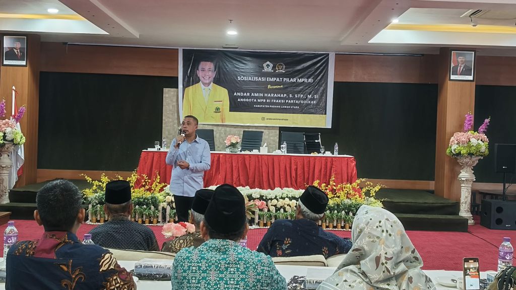 PADANG LAWAS UTARA, hariantabagsel.com- Dalam upaya meneguhkan semangat kebangsaan dan mempererat persatuan di tengah tantangan zaman, Anggota DPR RI dari Fraksi Partai Golkar, Andar Amin Harahap kembali mengadakan kegiatan sosialisasi 4 Pilar MPR RI pada Minggu, 29 Juni 2025.