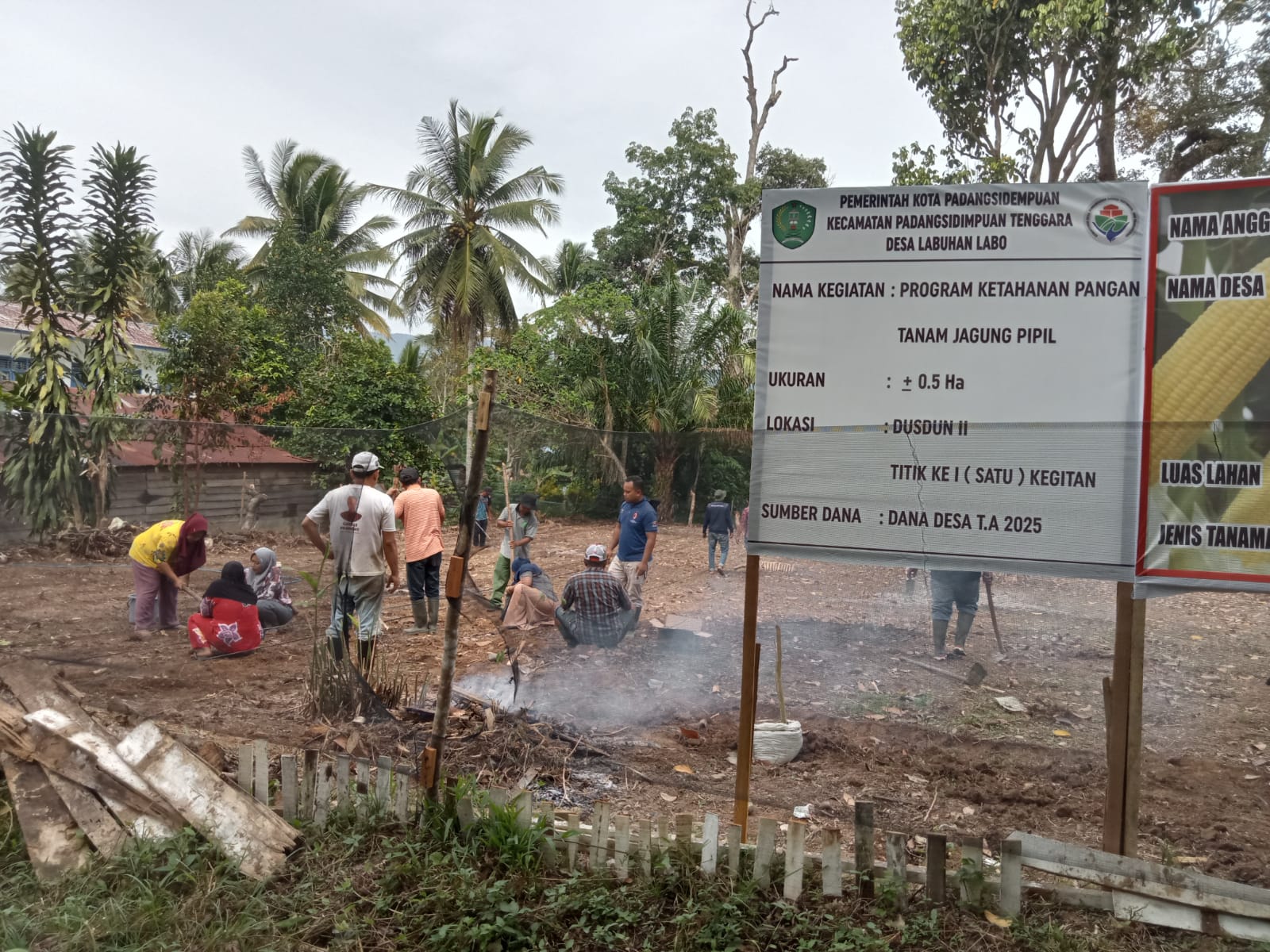 PADANGSIDIMPUAN, hariantabagsel.com- Pemerintah Desa (Pemdes), Labuhan Labo bersama masyarakat melaksanakan giat program budidaya Jagung Pipil untuk meningkatkan ketahan pangan di Desa Labuhan Labo, Kecamatan Padangsidimpuan Tenggara, Kota Padangsidimpuan, Kamis, (31/07/2025).