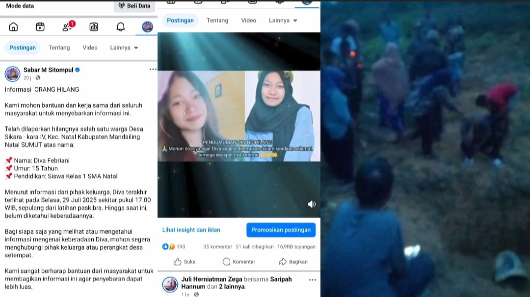 Diberitakan sebelumnya, Diva Febriani, remaja berusia 15 tahun warga Desa Sikarakara empat Kecamatan Natal Kabupaten Madina dikabarkan hilang usai selesai latihan pasukan pengibar bendera (paskibra) di lapangan Merdeka Natal pada hari Selasa (29/7/2025) kemarin.