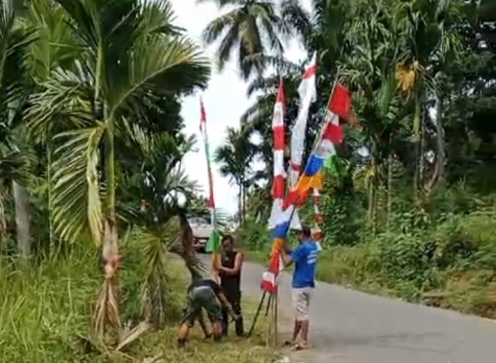 Pemasangan umbul-umbul dalam menyambut HUT RI Ke-80 di Desa Sihuik-Huik, Kecamatan Angkola Selatan, Kabupaten Tapanuli Selatan dilakukan pada hari Kamis,(31/07/2025) sekitar jam 10.00.