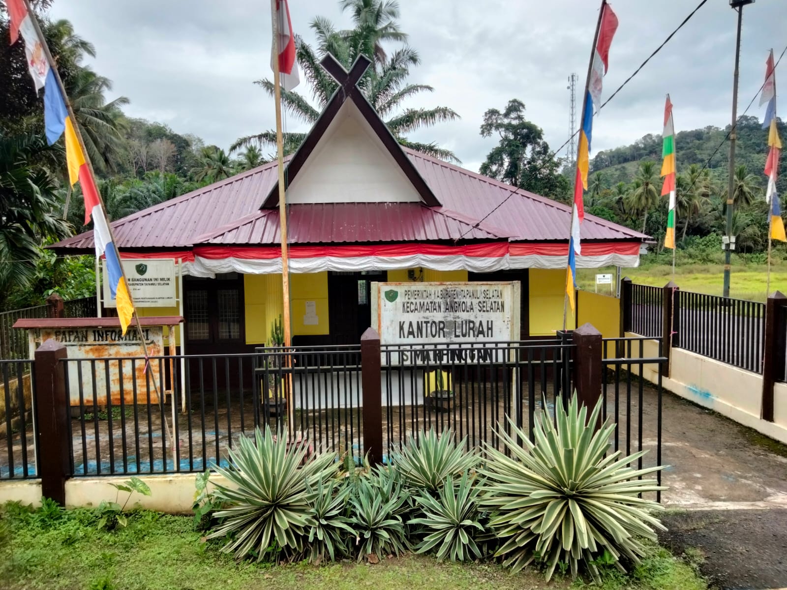 Pantauan Wartawan Harian Tabagsel di Kelurahan Simarpinggan, tampak Umbul-umbul sudah terpasang sekitar kantor Lurah dan beberapa titik sekitar ruas jalan kabupaten. (Saipul Bahri Siregar)