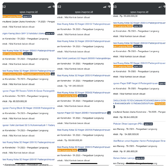 Sesuai dengan hasil dilapangan dan platfrom LPSE pengerjaan proyek tersebut sudah 85 s/d 90 %, sementara penandatanganan kontrak mulai tanggal 6 Agustus sampai tanggal 13 Agustus 2025. Dan informasi yang di dapatkan ada sebanyak 42 proyek di Disdik Kota Padangsidimpuan.