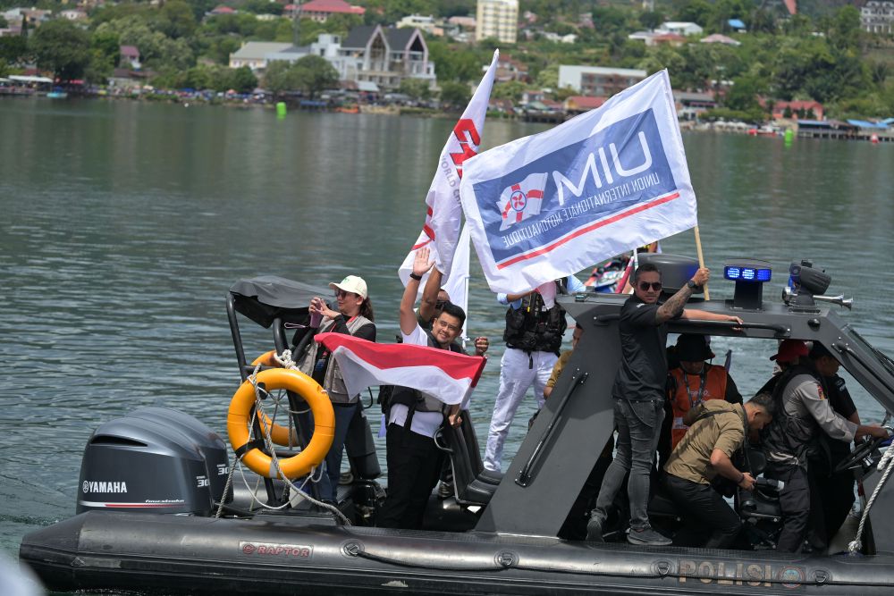 Turut hadir Sekdaprov Sumut Togap Simangunsong, Bupati Toba Effendy Sintong Napitupulu dan Chairment Lake Toba GP Aquabike and F1 Powerboat Troy Warokka.