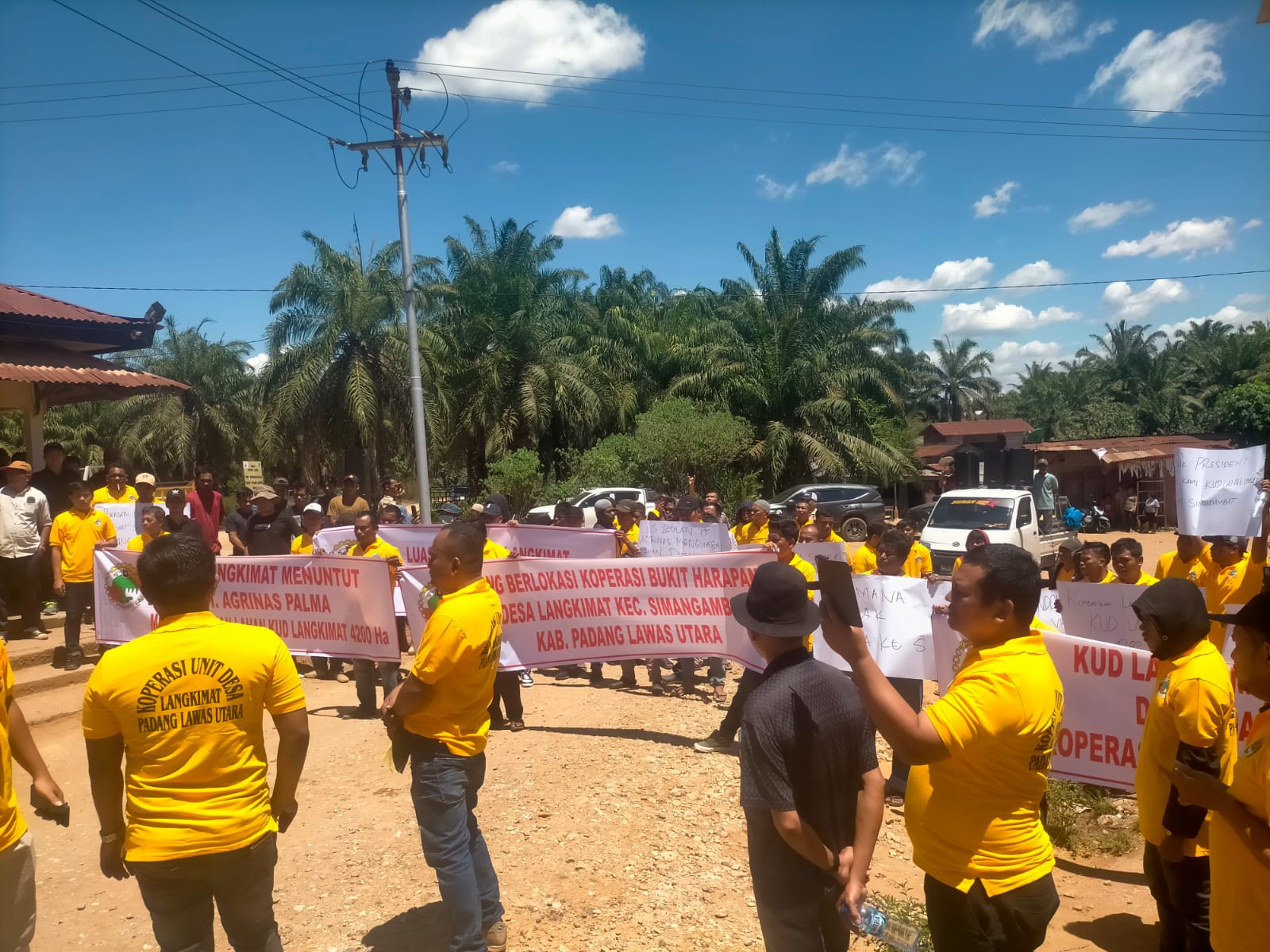 Koordinator aksi, Fitra Hasibuan, dalam orasinya menjelaskan bahwa sejak tahun 1996 masyarakat Desa Langkimat telah bermitra dengan PT Torganda melalui pola PIR inti-plasma. Namun, setelah PT Torganda diambil alih negara dan lahan diserahkan kepada PT Agrinas Palma Nusantara, kemitraan itu tidak lagi diakui.