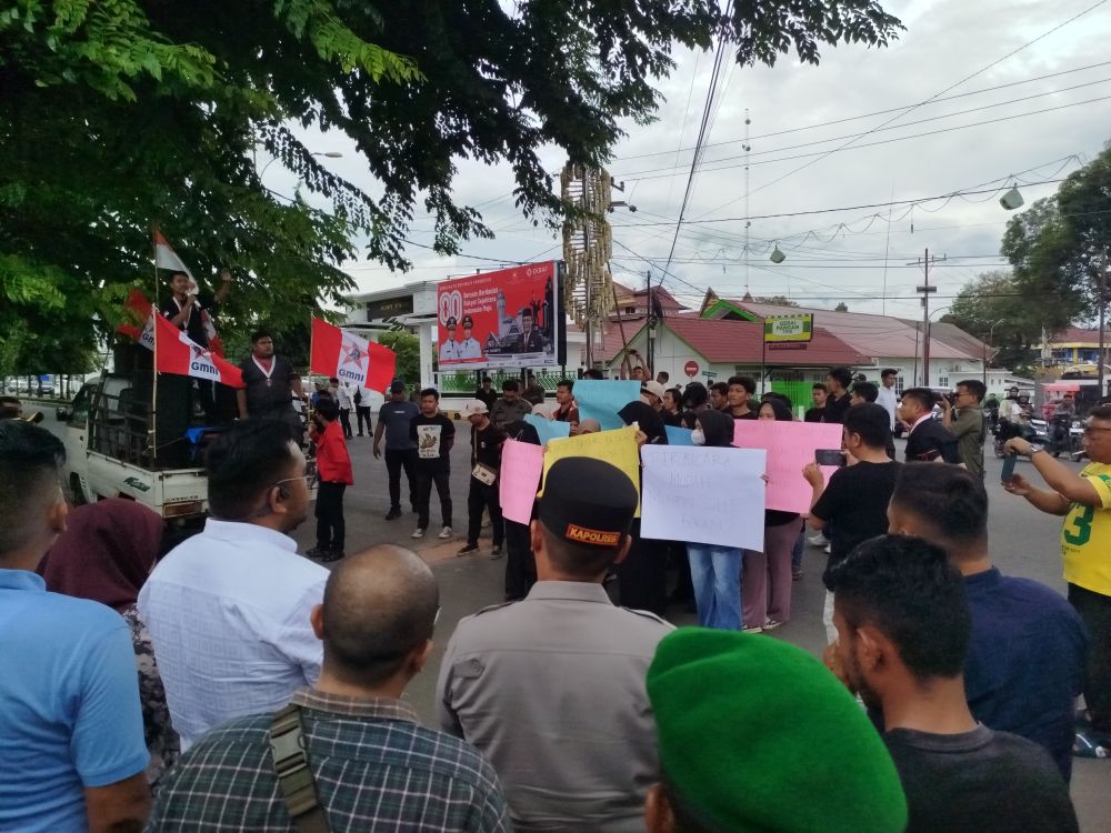Pantauan, massa GMNI lebih dulu berkumpul di alun-alun Alaman Bolak, Kota Padangsidimpuan, dan kemudian melakukan longmarch menuju kantor DPRD.