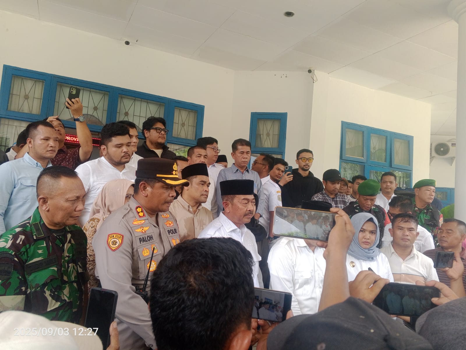 Pantauan dilapangan, peserta aksi tiba di Gedung DPRD Madina diperkirakan sekitar pukul 11.20 WIB dengan berbagai bendera kebesaran masing-masing disambut Kapolres AKBP Arie Sofandi Paloh dan Jajarannya, Ketua DPRD Erwin Efendi Lubis bersama anggota, Bupati Saipullah Nasution, Wakil Bupati Atika Azmi Utammi Nasution, TNI dan jajarannya.