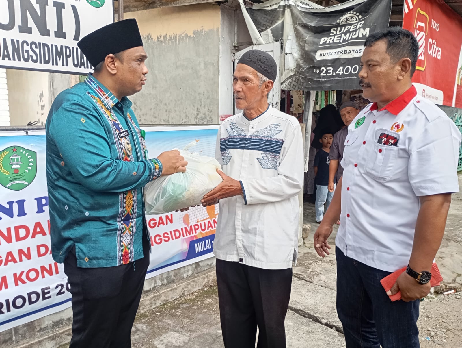 PADANGSIDIMPUAN, hariantabagsel.com- Calon Ketua Umum KONI Kota Padangsidimpuan Harry Pahlevi bagikan puluhan paket sembako kepada para pengurus Cabang olahraga (Cabor) yang ada di Kota Padangsidimpuan.