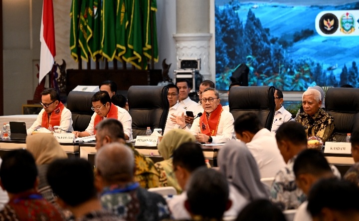 Rapat ini dihadiri Wakil Menteri Dalam Negeri Bima Arya, Kepala Bappenas Arief Prasetyo Adi dan jajaran Kementerian Koordinator Bidang Pangan. Hadir juga bupati/walikota se-Sumut, OPD terkait Pemprov Sumut dan Forkopimda. (*)