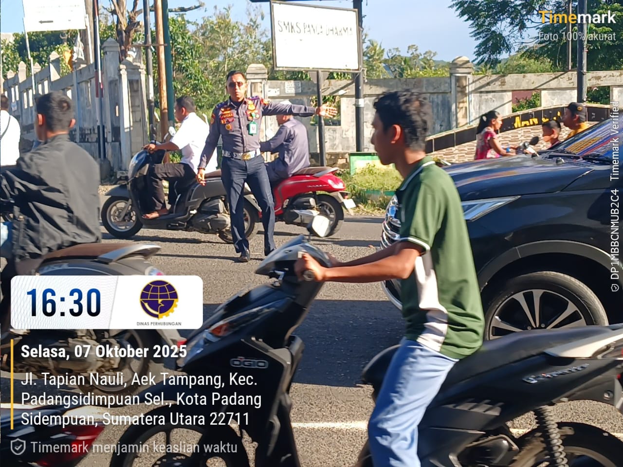 PADANGSIDIMPUAN, hariantabagsel.com– Untuk memberikan pelayanan tebaik bagi pengendara, Kepala Dinas Perhubungan (Dishub) Kota Padangsidimpuan, Alfian Pane, SSos, MM, turun langsung mengurai kemacetan di Simpang Empat Silandit, Kecamatan Padangsidimpuan Selatan, Selasa (7/10/2025).