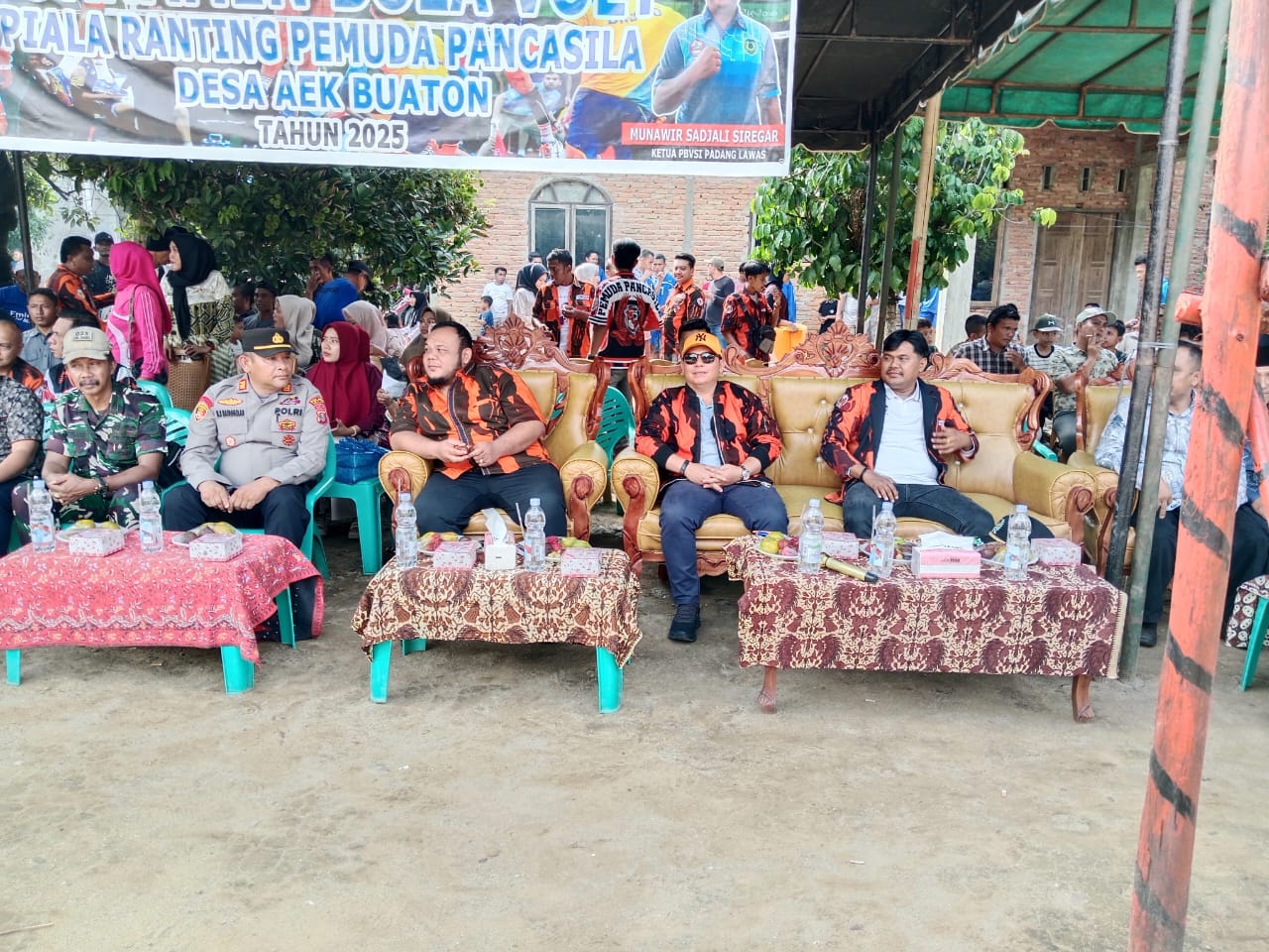 PADANG LAWAS, hariantabagsel.com– Final turnamen bola voli piala ranting pemuda pancasila Desa Aek Buaton mempertemukan tim Parantonga Kecamatan Aek Nabara Barumun dengan Siboris Dolok Kecamatan Barumun Tengah. Hadir dalam partai final sekaligus penutupan turnamen itu wakil Ketua DPRD Amran Pikal Siregar, Ketua MPC Pemuda Pancasila Risman Hasibuan (Bung Cikman), Kapolsek Barumun Tengah, AKP Rahmat Saleh Nainggolan, sejumlah pimpinan OPD, para camat se Eks Barumun Tengah.