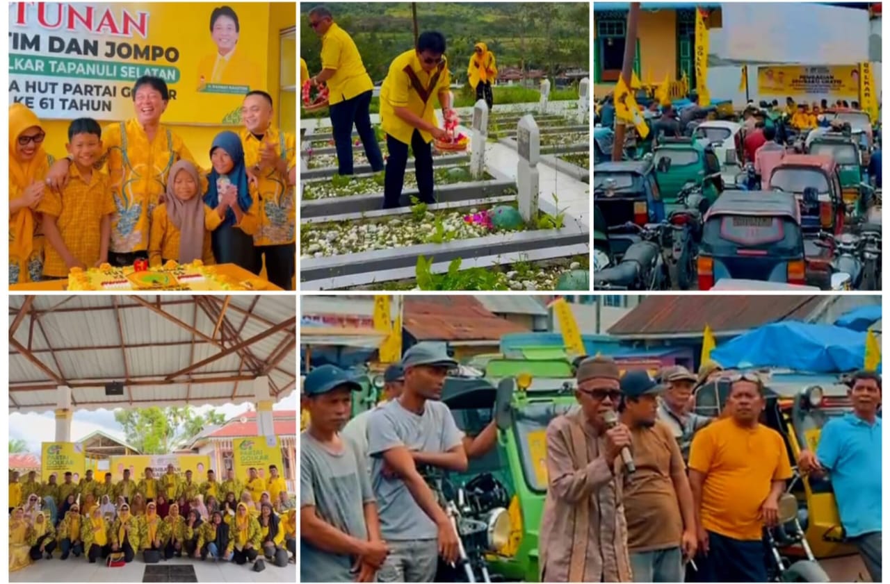 TAPANULI SELATAN, hariantabagsel.com– Dewan Pimpinan Daerah (DPD) Partai Golkar Kabupaten Tapanuli Selatan (Tapsel) menggelar serangkaian kegiatan sosial yang menyentuh hati dalam rangka memperingati Hari Ulang Tahun (HUT) ke-61 Partai Golkar.
