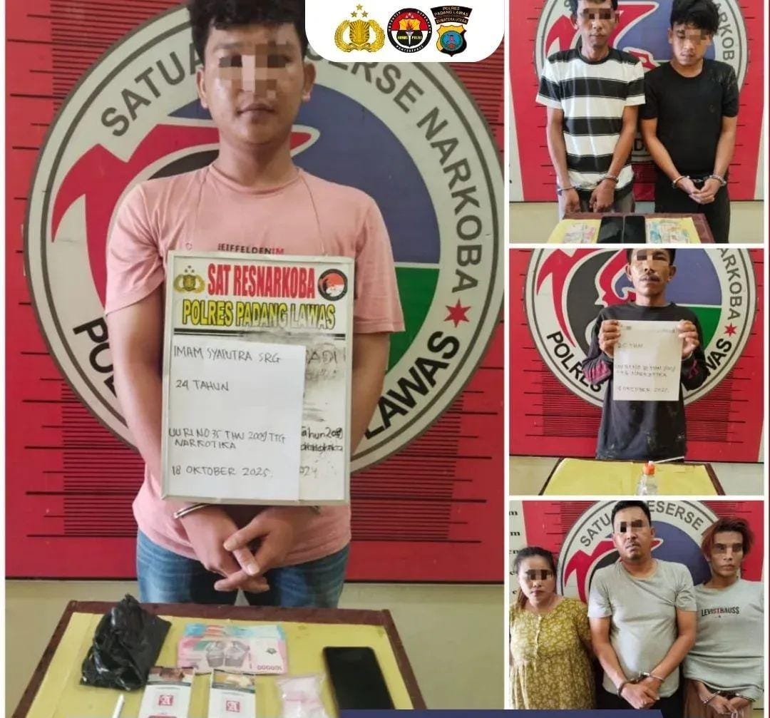 Ps Kasubsi Penmas Bripka Ginda K Pohan menambahkan, berdasarkan hasil gelar perkara terhadap HRR, NSN, RH, MAH, JKH dan ISS alias Jelok telah ditetapkan sebagai tersangka peredaran gelap narkotika dan telah ditahan di RTP Polres Padang Lawas.