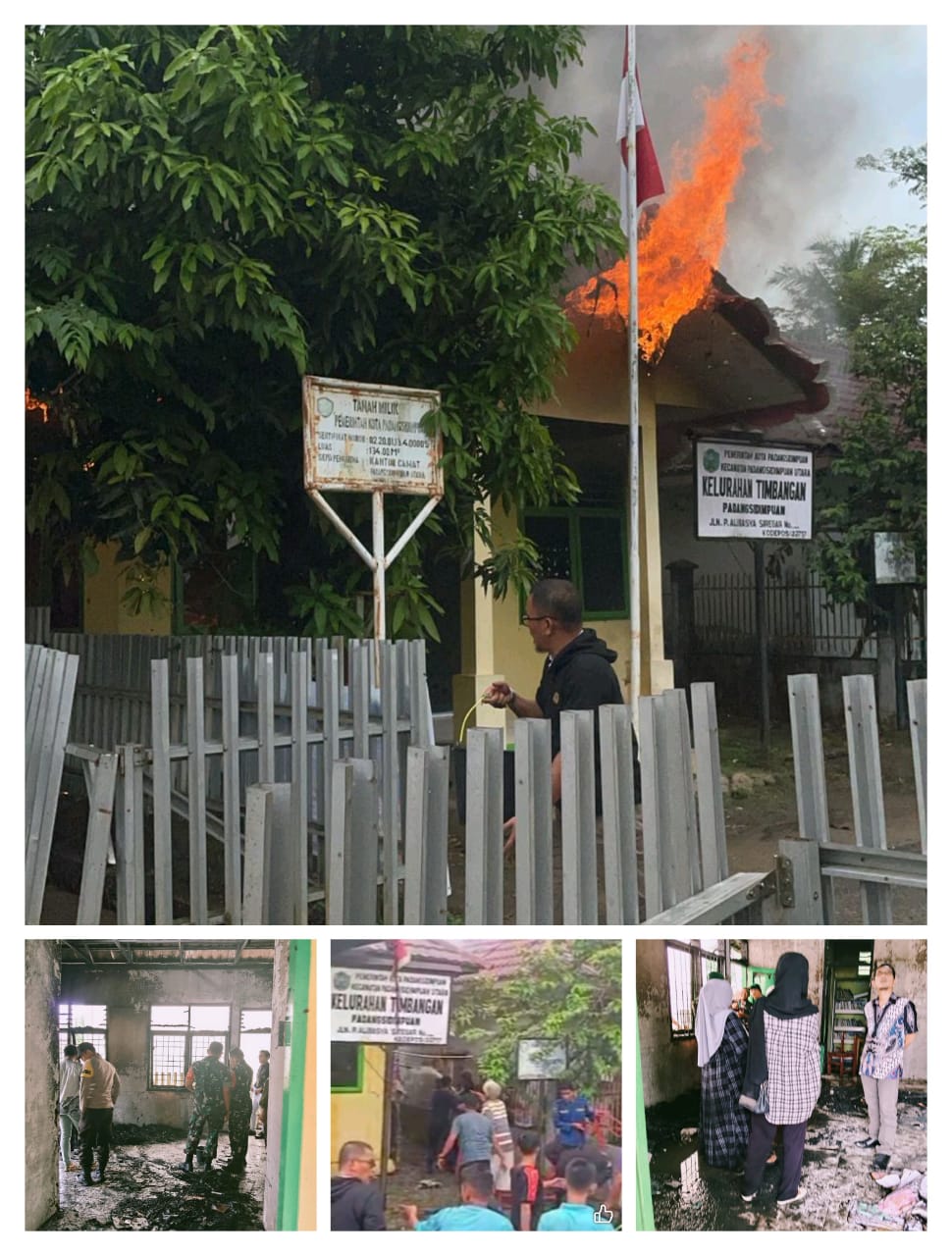 Api dengan cepat menghanguskan seluruh ruangan kerja staf Kelurahan Timbangan sebelum akhirnya berhasil dipadamkan oleh petugas pemadam kebakaran dari Dinas Damkar Kota Padangsidimpuan yang tiba di lokasi dengan 5 unit armada.
