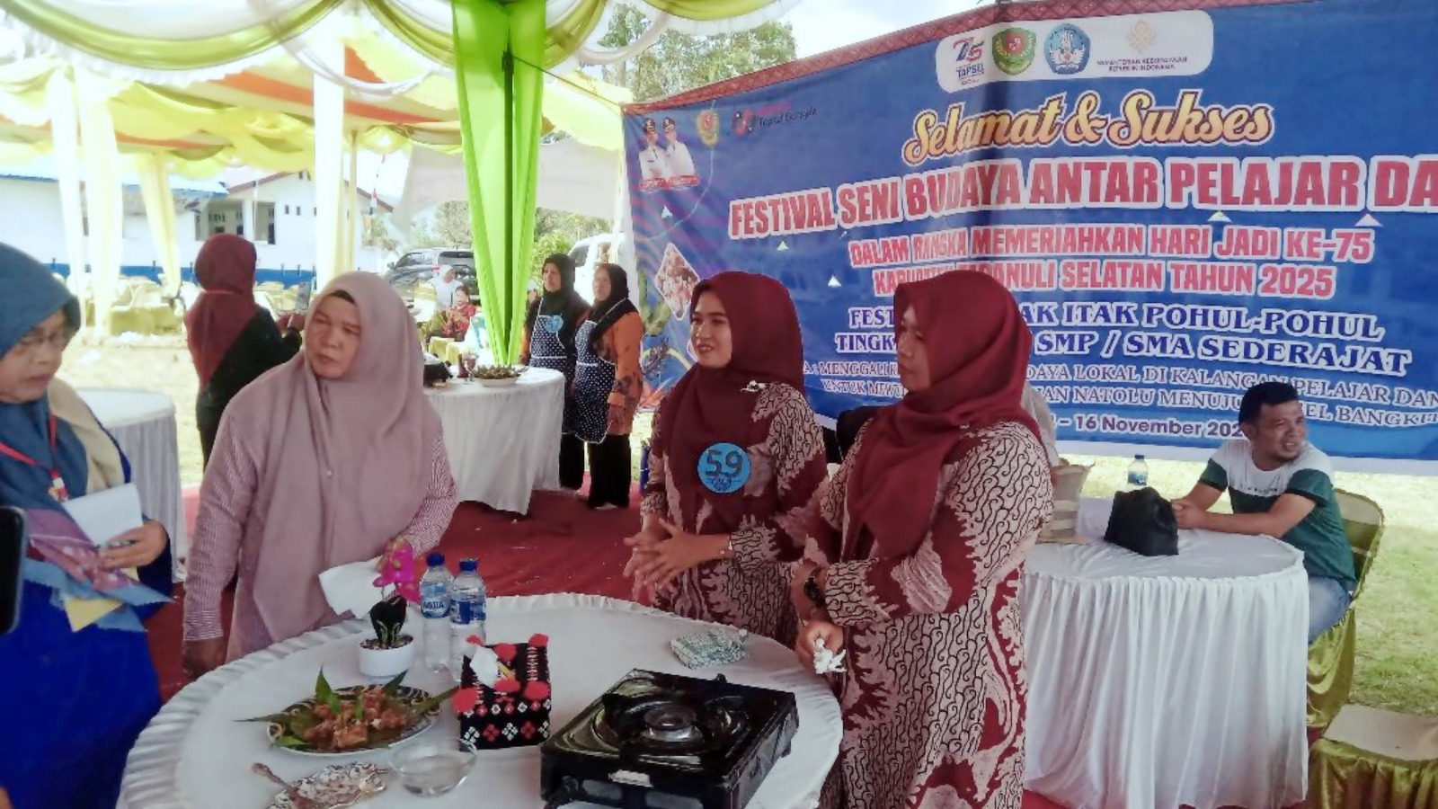 TAPANULI SELATAN, hariantabagsel.com– Itak Pohul-Pohul Kue tradisionil yang berasal dari wilayah Tapanuli Bagian Selatan, jadi salah satu yang diperlombakan dalam rangka memeriahkan hari jadi ke 75 Kabupaten Tapanuli Selatan. Lomba membuat itak pohul-pohul ini salah satu bidang pada Festival Seni Budaya antar Pelajar dan Guru se Tapanuli Selatan yang diselenggarakan Dinas Pendidikan Kabupaten Tapanuli Selatan. Perlombaan ini berlangsung pada 14 s/d 16 Nopember 2025 di Lapangan Bola Pargarutan, Kecamatan Angkola Timur, Kabupaten Tapanuli Selatan.