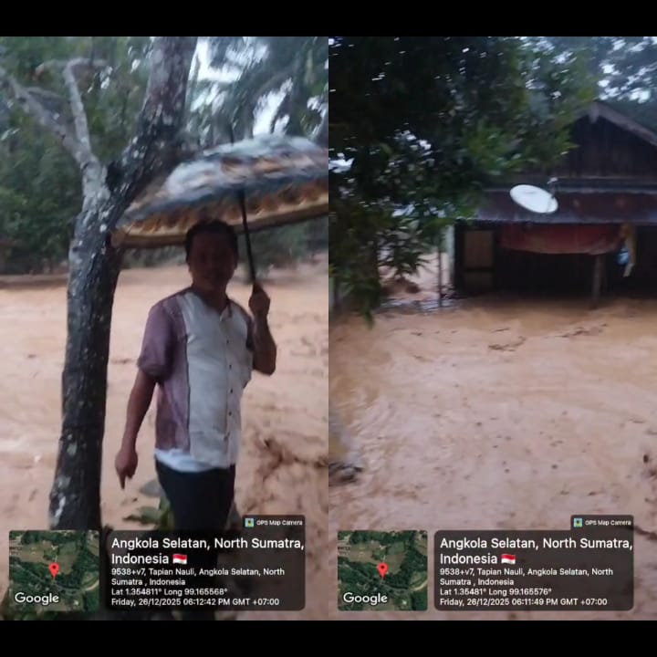 TAPANULI SELATAN, hariantabagsel.com– Bencana banjir kembali melanda Lingkungan Dua Siopat-Opat, Kelurahan Tapian Nauli, Kecamatan Angkola Selatan, Kabupaten Tapanuli Selatan, Jumat (26/12/2025).