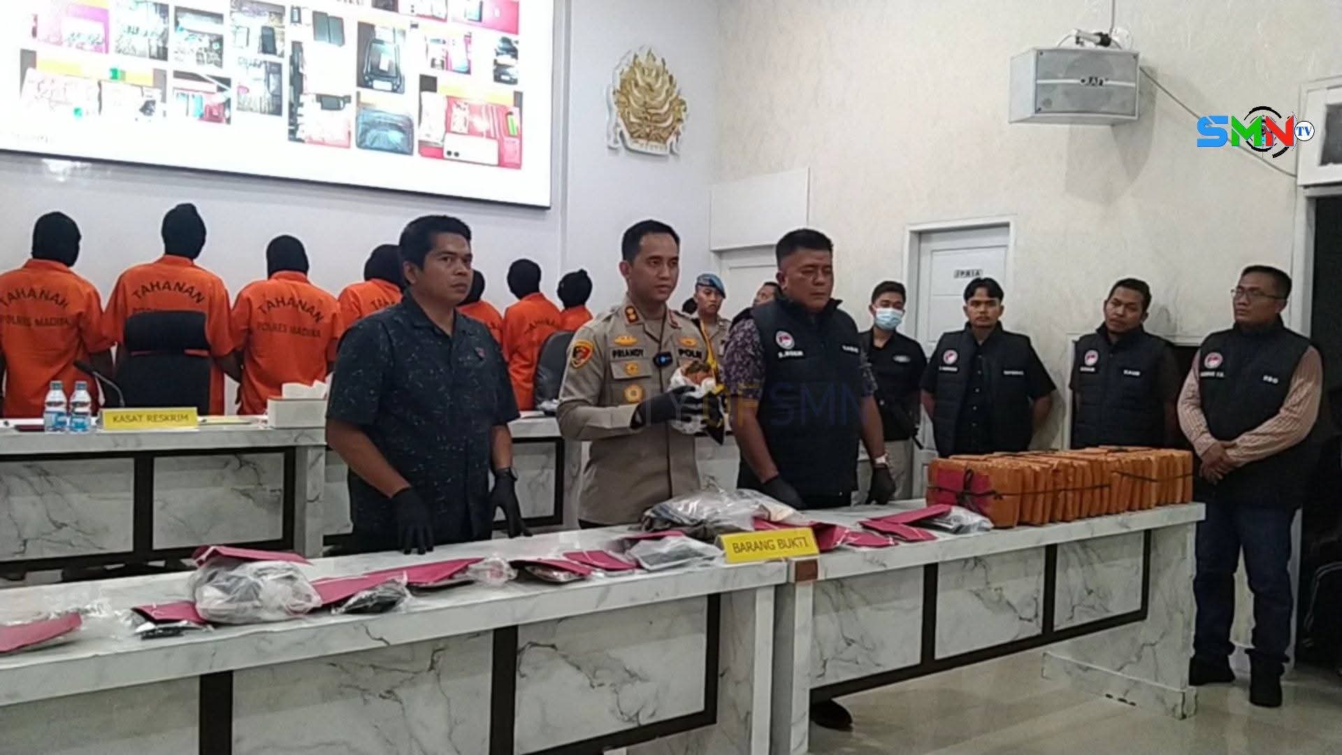Dari pengungkapan tersebut, polisi menyita barang bukti sabu seberat 121,07 gram dan ganja 24.725,93 gram. Selain itu, turut diamankan satu unit mobil Xenia BK 1782 AED, empat unit sepeda motor, 12 unit handphone, empat timbangan digital, enam alat hisap sabu (bong), serta uang tunai Rp1.521.000 yang diduga hasil transaksi.