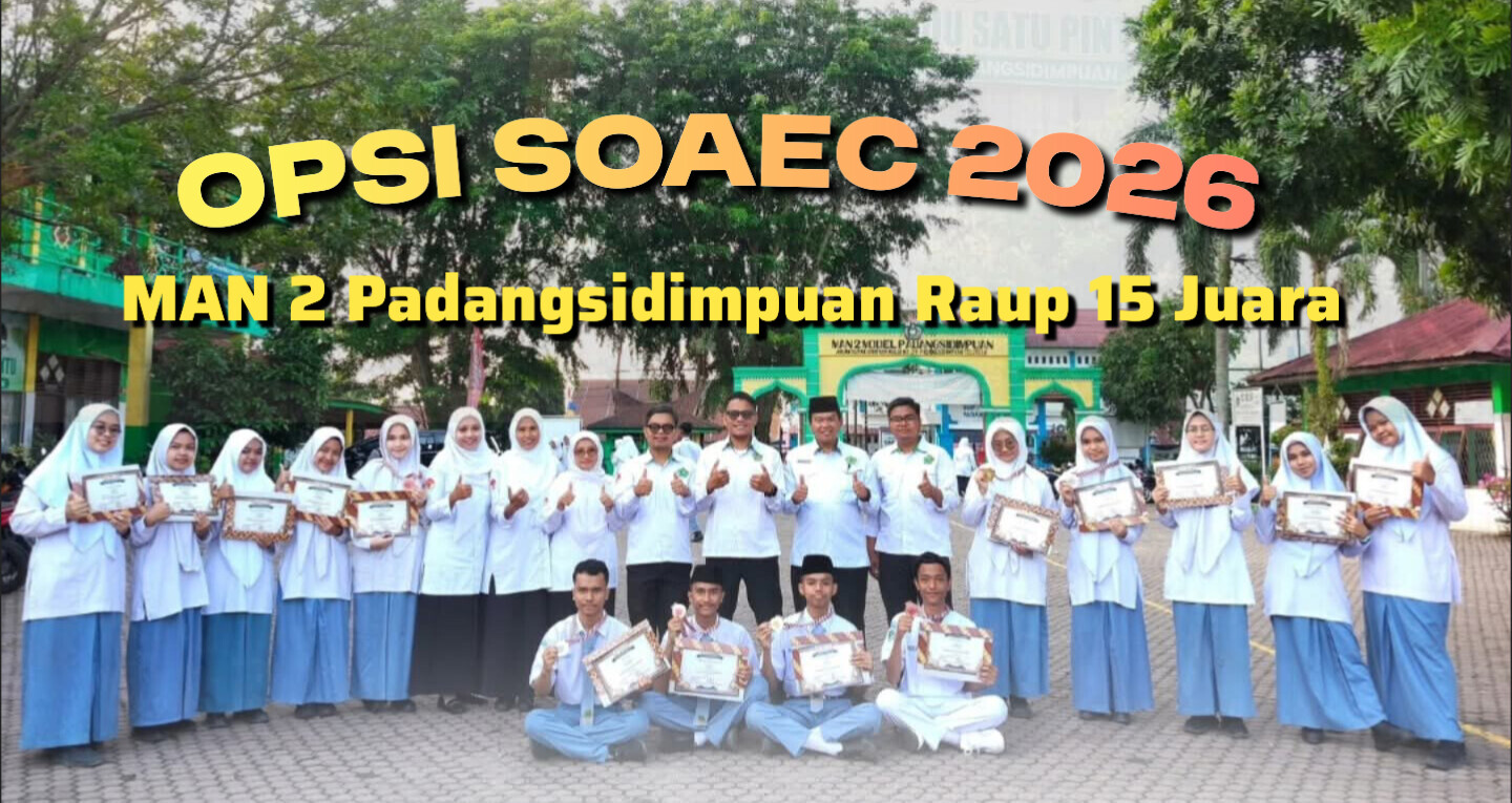 PADANGSIDIMPUAN, hariantabagsel.com– Siswa MAN 2 Padangsidimpuan meraup 15 juara di ajang Olimpiade Pelajar Sains dan Islami (OPSI) Syahada Olympiad and Academic Excellence Center (SOAEC) 2026. Gelaran lomba ini diadakan oleh Fakultas Tarbiyah dan Ilmu Keguruan UIN SYAHADA yang berlangsung pada Sabtu (25/04/2026). Kegiatan akbar ini diikuti 3.000 orang lebih peserta dari tingkat SD, SMP, SMA sederajat.